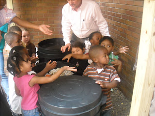 This morning we had the opportunity to visit the Judson YMCA's pre-school program and teach them about nutrition, gardening and worm composting. They were full of energy, eager to learn and incredibly cute. Below shows what fun they had learning about how certain fruits and vegetables help the body part they resemble (with hospital dietitians, Susan Hubbard and Meagan Kennedy) . They had a yummy snack of grapes, celery and cherry tomatoes (aka "ketchup berries"). They also got to plant their own vegetables, visit the worm compost site at St. Francis, and peruse through our community garden. It was a fun morning!